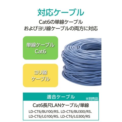 Cat6の単線ケーブルおよびヨリ線ケーブルの両方に対応しています。