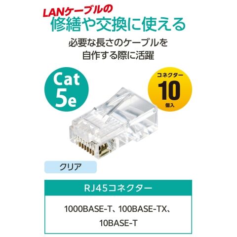 LANケーブルの自作に。Cat5e用のRJ45コネクター10個入りです。