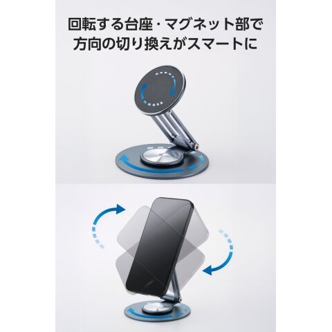マグネット部分は360度回転し、スマホの縦向き・横向きの切り替えがスムーズです。
