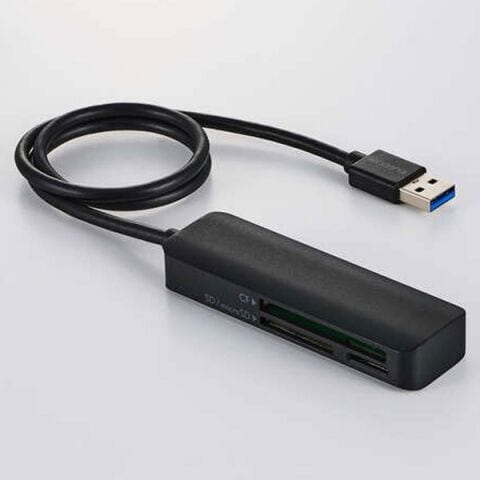 エレコム メモリーカードリーダー USB3.2(Gen1) 高速転送 SD microSD コンパクトフラッシュ 3スロット Windows11/Mac対応 ケーブル付き(ブラック) MR3-C30BK 【返品種別A】
