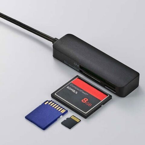 パソコンへの接続に便利なUSB-Aプラグのケーブル付きメモリーカードリーダー