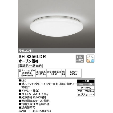 オーデリック 6畳~8畳用 LEDシーリングライト【カチット式】 ODELIC SH8356LDR 【返品種別A】