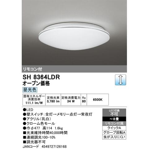 オーデリック 6畳~8畳用 シーリングライト【カチット式】 ODELIC クロームモール飾りシーリング SH8364LDR 【返品種別A】