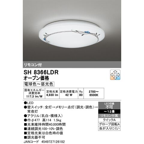 オーデリック 12畳~10畳用 シーリングライト【カチット式】 ODELIC ボタニカルプリントシーリングライト SH8366LDR 【返品種別A】