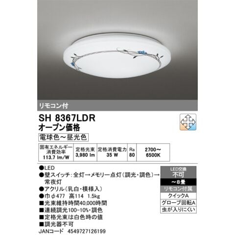 オーデリック 8畳~6畳用 シーリングライト【カチット式】 ODELIC ボタニカルプリントシーリングライト SH8367LDR 【返品種別A】