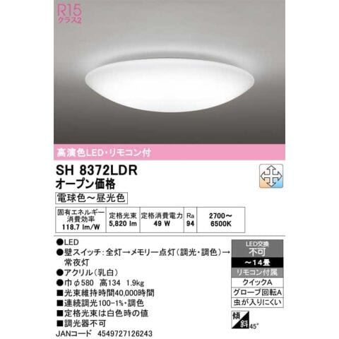オーデリック 12畳~14畳用 LEDシーリングライト【カチット式】 ODELIC 「R15」高演色シーリング SH8372LDR 【返品種別A】