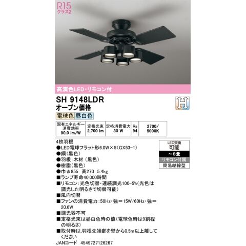 オーデリック 6畳~8畳用 シーリングファン【昼白色/電球色】 ODELIC 光色切替機能付シーリングファン SH9148LDR 【返品種別A】