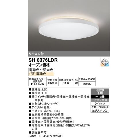 オーデリック 10畳~12畳用 シーリングライト【カチット式】 ODELIC 間接光付きシーリング SH8376LDR 【返品種別A】