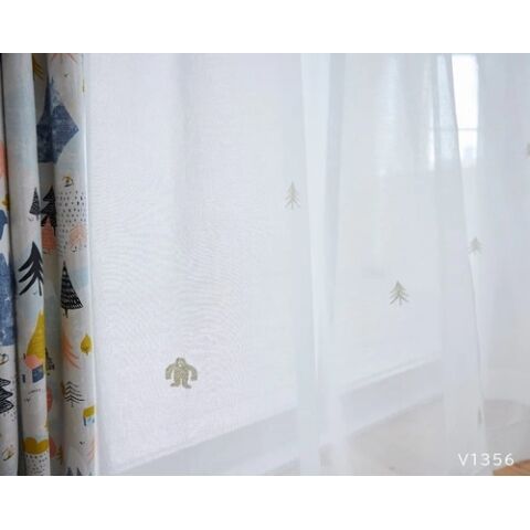 ◆ユキヤマで暮らすイエティと針葉樹を刺繍したシアー。