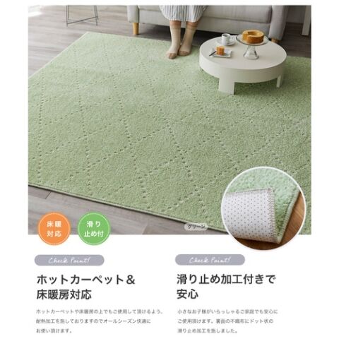 フローリングなどの床材上で使用していただいた場合でもラグやマットが滑りにくい加工を施した製品です。