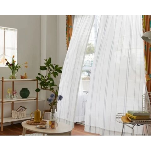 ◆刺し子調のストライプでクラフト感のあるシアー。