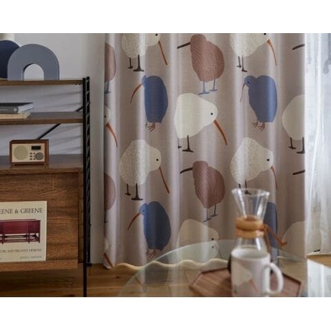 スミノエ(SUMINOE) テクテクキーウイ 遮光2級カーテン 1枚入り(幅100×高さ135cm・グレー) DESIGNLIFE ドレープカーテン(323-75980) V1370-100-135 【返品種別A】