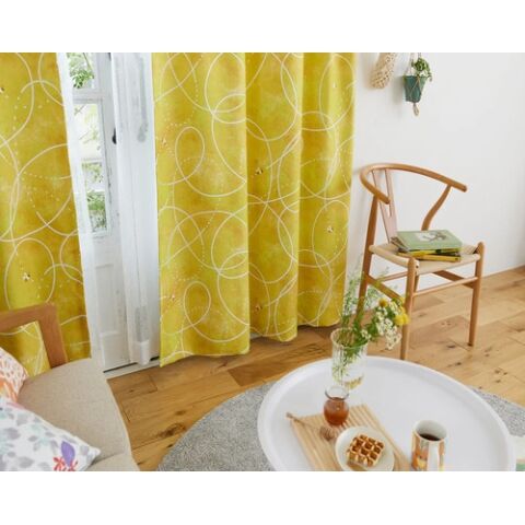 スミノエ(SUMINOE) ハミングビー 遮光3級カーテン 1枚入り(幅100×高さ200cm・イエロー) DESIGNLIFE ドレープカーテン(323-76243) V1375-100-200 【返品種別A】