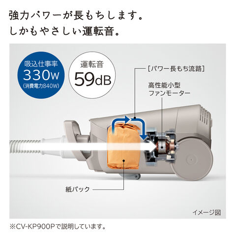 ごみがたまってきても「パワー長もち流路」でパワーが長もちします。しかもやさしい運転音59dB。