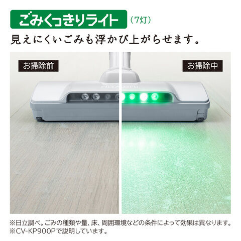 ヘッドに「ごみくっきりライト」を搭載。もっとも明るく感じる波長に近い緑色のLEDライトで見えにくいごみも浮かび上がらせます(※)。