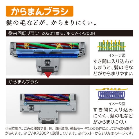 また、回転ブラシの先端をループ形状にした「からまんブラシ」を採用。髪の毛などがからまりにくく、スッキリ吸引。お手入れもラクです(※)。