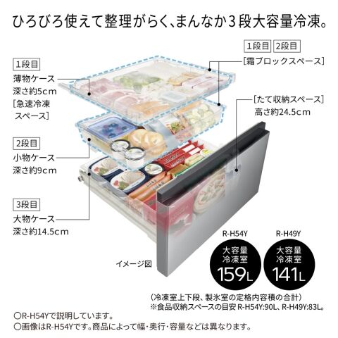 冷蔵室:253L [190L うちまるごとチルドルーム 115L うち特鮮氷温ルーム 12L]