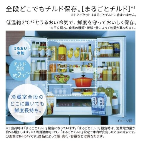 ※1 出荷時は「まるごとチルド」設定になっています。「まるごとチルド」設定時は、消費電力量が約5%増加します。
