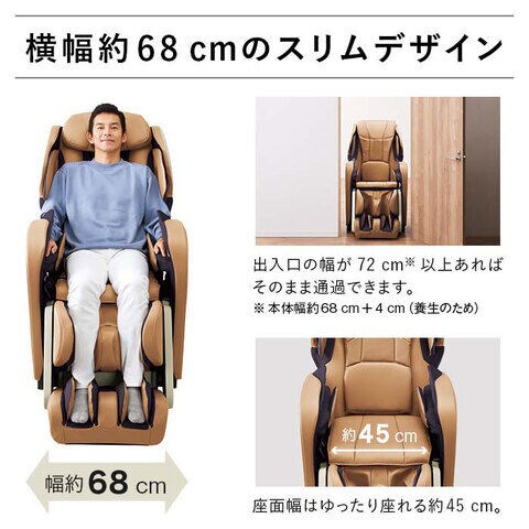 脚のせ台(脚・足裏マッサージ部):5~85度 - サイズ(約):幅68×奥行130×高さ120cm (クッション無しの場合 高さ115cm)