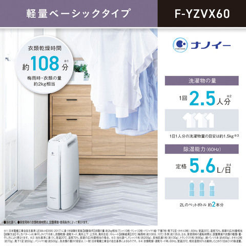 パナソニック 除湿乾燥機(木造7畳/コンクリート造14畳まで ストーングレー) Panasonic デシカント方式 ECONAVI(エコナビ)&nanoe(ナノイー)搭載 F-YZVX60-H 【返品種別A】