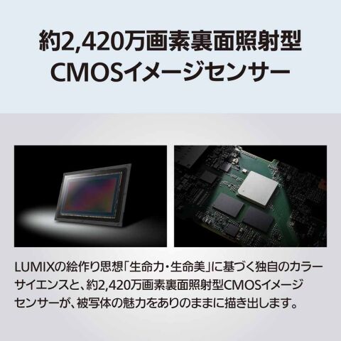LUMIXの絵作り思想「生命力・生命美」に基づく独自のカラーサイエンスと、約2420万画素裏面照射型CMOSイメージセンサーが、被写体の魅力をありのままに描き出します。