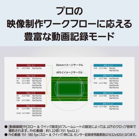 また、センサー全域を使った6K 30p(3:2)動画記録にも対応しています。