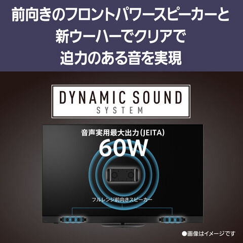 クリアなダイレクトサウンドを届ける前向きに配置されたフロントパワースピーカーと大出力の新ウーハーにより、音が前に迫ってくるような迫力を実現し、コンテンツの魅力を引き立てます。