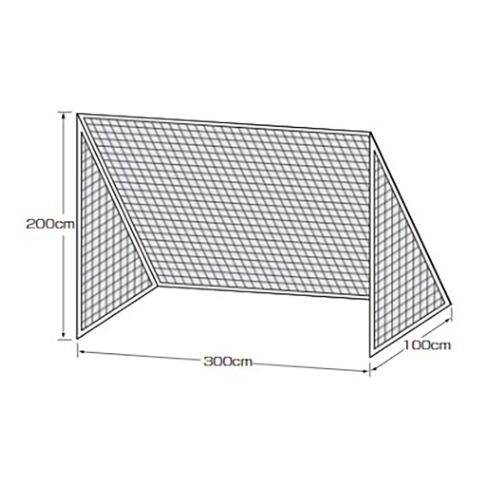 ◆幅300×高200×奥100cm、角目10cm網目形状のサッカーゴールネット。