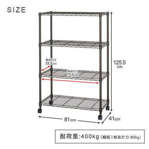 ルミナス ルミナスノワール 4段ラック 幅61×奥行41×高さ125.5cm Luminous ポール径25mm ノワールシリーズ スチールラック キッチンラック 幅60cm 4段 NO6012-4 【返品種別A】