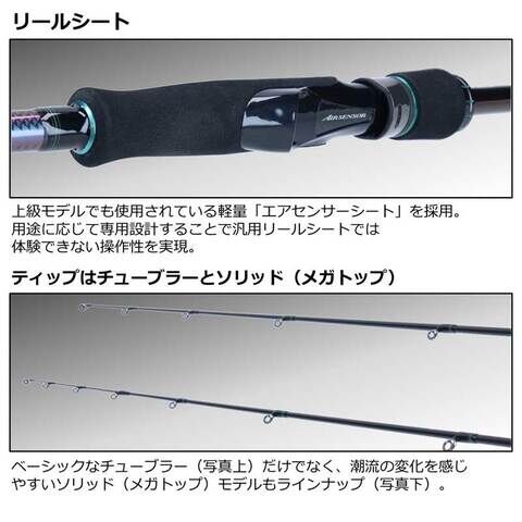 そしてグリップは独自の軽量エアセンサーシートの採用によりキャスト、シャクリの一連の動作がまるでワンランク上のロッドを使っているかのような錯覚に陥る位のコストパフォーマンスを実現した。