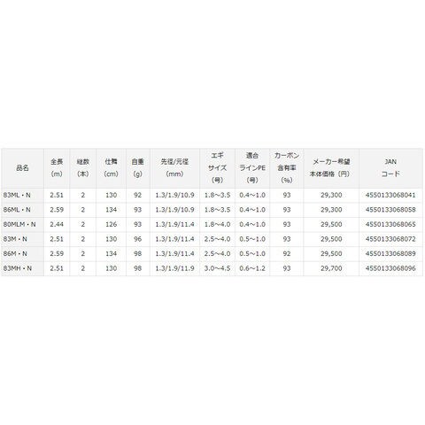 8.6ftはキャスタビリティ、操作性共にバランスの取れたレングスで、秋に使用頻度の高い3号を中心に2.5号~3.5号までの幅広いエギサイズに対応。