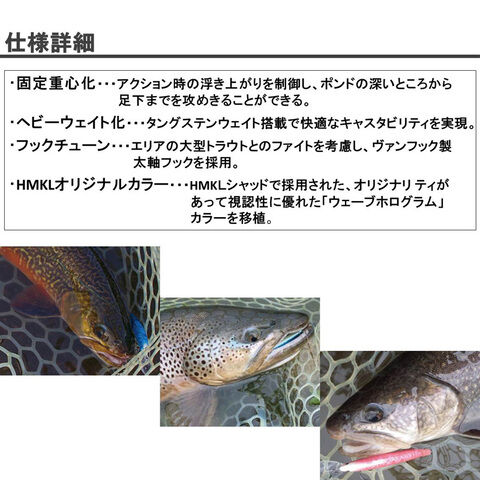 ・HMKLオリジナルカラー・・・HMKLシャッドで採用された、オリジナリティがあって視認性に優れた「ウェーブホログラム」カラーを移植。