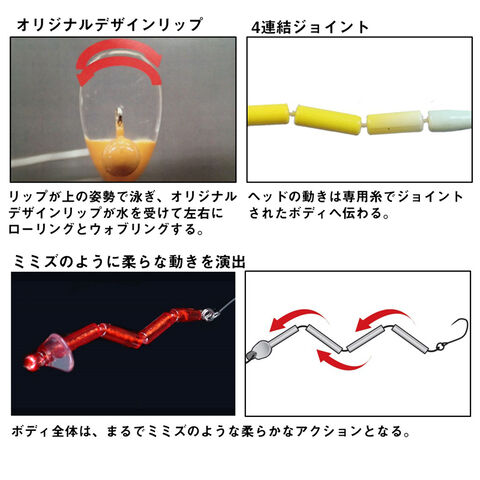 ・上リップ+4連結ジョイントによる今までに見たことの無いミミズアクションプラグ。