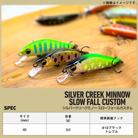 シルバークリークミノースローフォールカスタムの特徴はゆっくり沈むスローシンキングにより時間をかけた繊細なアプローチを可能にし、