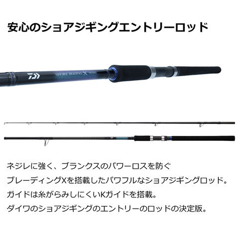 ブレーディングXを搭載し、魚の引きに負けない丈夫な仕上げのブランクを搭載。ショアジギングエントリーを万全にサポートする。