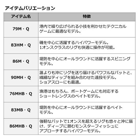 漁港から磯まで対応する隙のないラインナップで、全国のロックフィッシュを包囲する。