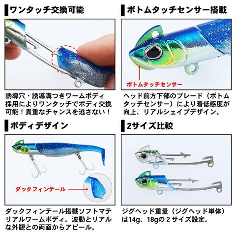 ジグヘッド重量(ジグヘッド単体)は14g、18gの2サイズ設定。