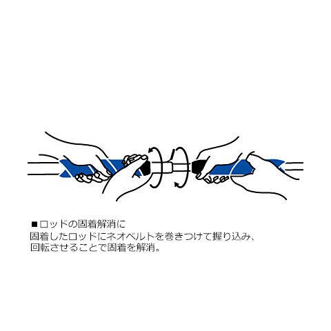 ネオベルトはロッドを束ねる機能はもちろんですが、固着したロッドを握り込み回転させて固着を解消するというもうひとつの機能を備えている。