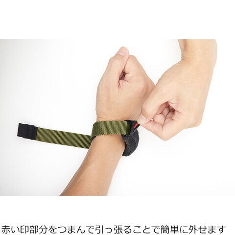 20mmのベルトが手首のくぼみにぴったりとはまり極力動作を妨げることなくピンポイントで圧迫。