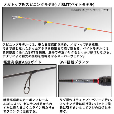 ベイトモデルには負荷感度に優れたSMTを採用。深場での重いリグをしっかり操作しながら、アタリによる穂先の振動を増幅させるスーパーウェポン。