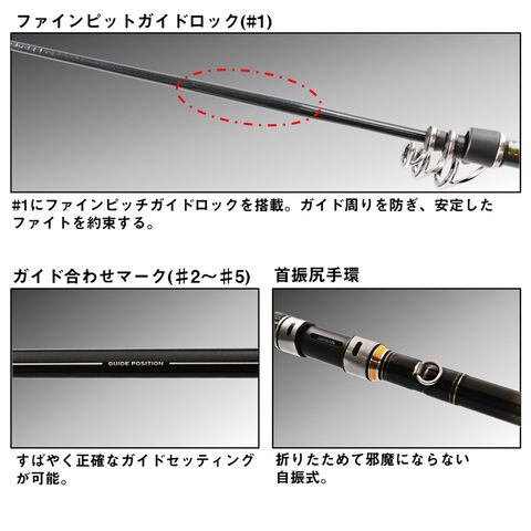 元上部にガイドを1つ追加し、更に全体のガイド配置を見直した事で、従来品よりもバット部までしっかりと曲がり込み、ブランクスの性能を最大限に発揮するバランスへと進化。