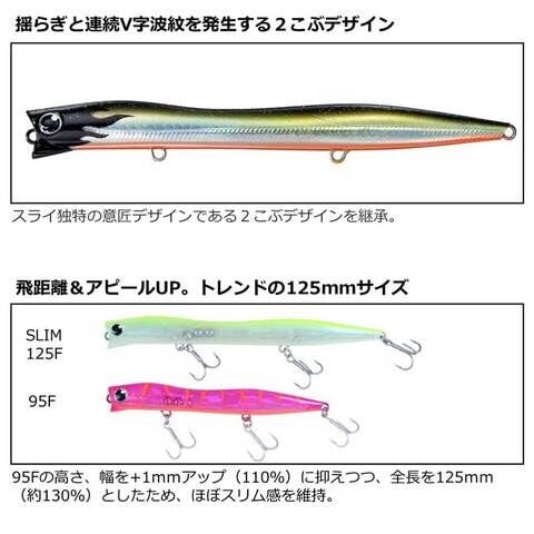 5. 飛距離&アピール力をアップした125mmサイズはバチだけでなく、通年水面直下を意識したシーバスにアピール。