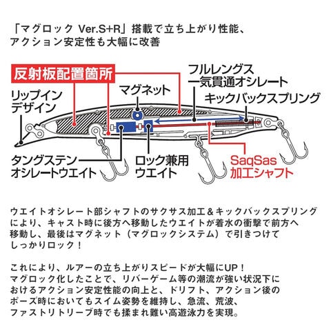 マグロック化したことで、リバーゲーム等の潮流が強い状況下におけるアクション安定性能の向上と、ドリフト、アクション後のポーズ時においてもスイム姿勢を維持、急流、荒波、ファストリトリーブ時でも揉まれ難い高遊泳力を実現。