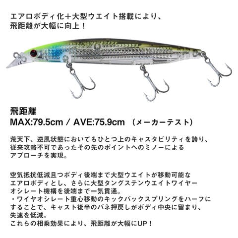 荒天下、逆風状態においてもひとつ上のキャスタビリティを誇り、従来攻略不可であったその先のポイントへのミノーによるアプローチを実現。