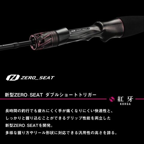 テスターの想いが詰まったタイラバ専用ZERO₋SEAT ダブルショートトリガー。(ベイトモデルのみ)カーボンファイバー入り軽量リールシート エアセンサーシート。(SPモデルのみ)