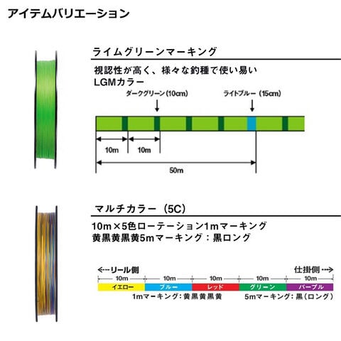 ダイワ独自の「EX加工」を採用し糸表面が非常に滑らかになり、飛距離UP、音鳴り減少、ゴミ付着減少。