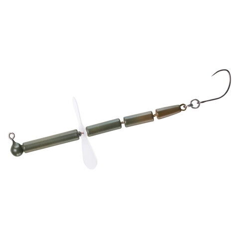 薄型樹脂製スクリューはデッドスローでもしっかり回転して視覚、水の動き、テールの微振動でトラウトにアピール。