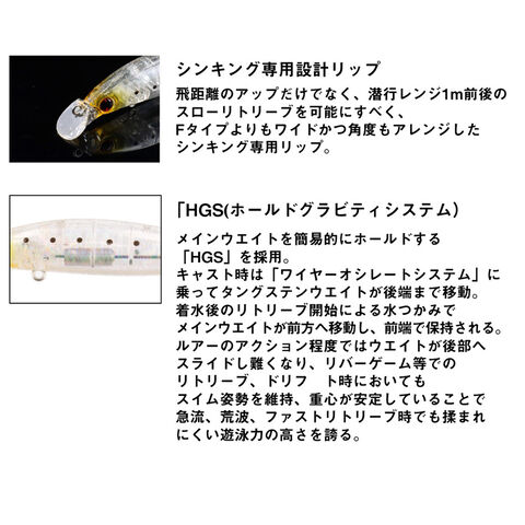 クラス最高レベルの飛距離をたたき出しつつ、潜行レンジ1m前後のスローリトリーブトレースを可能とした。