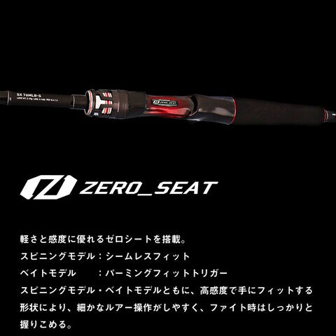 軽さと感度に優れるゼロシートを搭載。(スピニング:シームレスフィット ベイト:パーミングフィットトリガー)ベイト、スピニングともに、