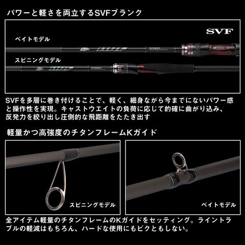 SVFを多層に巻き付けることで、軽く、細身ながら今までにないパワー感と操作性を実現。キャストウエイトの負荷に応じて的確に曲がり込み、反発力を絞り出し圧倒的な飛距離をたたき出す。